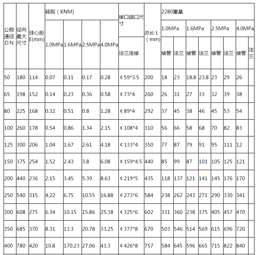QB球形補(bǔ)償器主要技術(shù)指標(biāo)