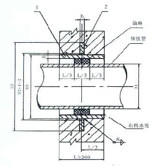 剛性防水套管(B型)(C 型)適用于管道穿墻處不承受管道振動(dòng)和伸縮變形的構(gòu)(建)筑物。對于有地震設(shè)防要求的地區(qū),如采用剛性防水套管,應(yīng)在進(jìn)入池壁或建筑物外墻的管道上就近設(shè)置柔性連接。B型和C型適用于球墨鑄鐵鋼管及鑄鐵管。